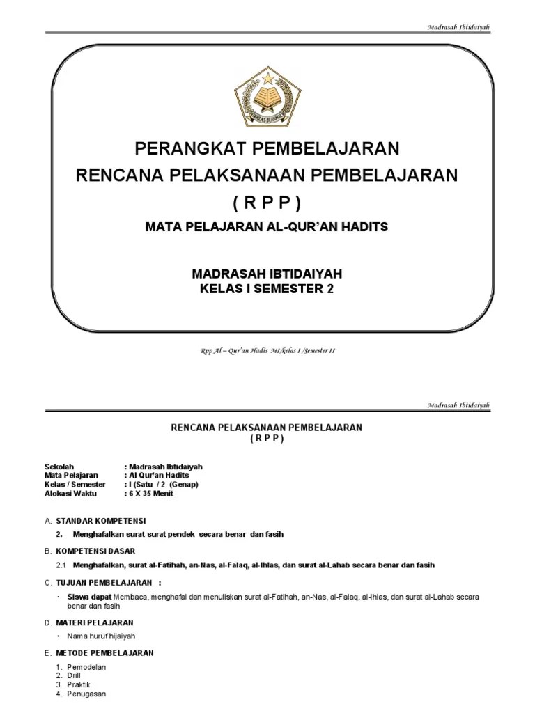 Rpp al quran hadis mi/kelas v / semester 2 52. Seperti rpp, silabus, program semester/promes, . ( r p p ). Ii ( dua ) / 2 ( genap ) . Berikut kami berikan contoh rpp daring alquran hadis khusus untuk mi kelas 1, 2, 3, 4, 5 dan 6 semester 1 dan 2 sesuai kma no 183 tahun 2019.